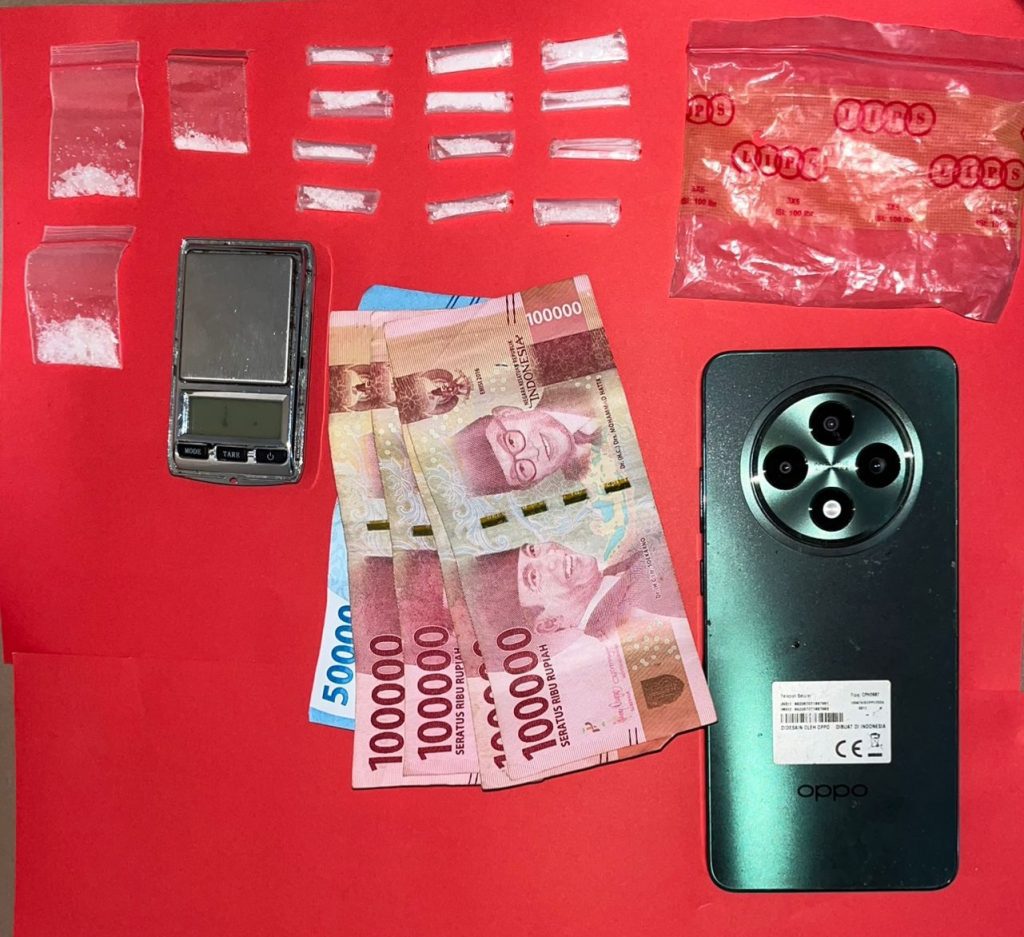 Barang haram tersebut memiliki berat kotor 3,23 gram (berat bersih 1,49 gram), yang kini telah disita bersama barang bukti pendukung lainnya untuk keperluan penyidikan.