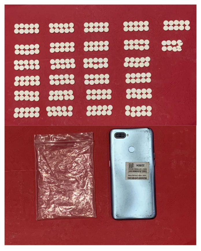 Barang bukti yang berhasil disita berupa 258 butir obat tablet warna putih dengan logo Y, 1 buah gawai, dan uang tunai Rp 600 ribu.