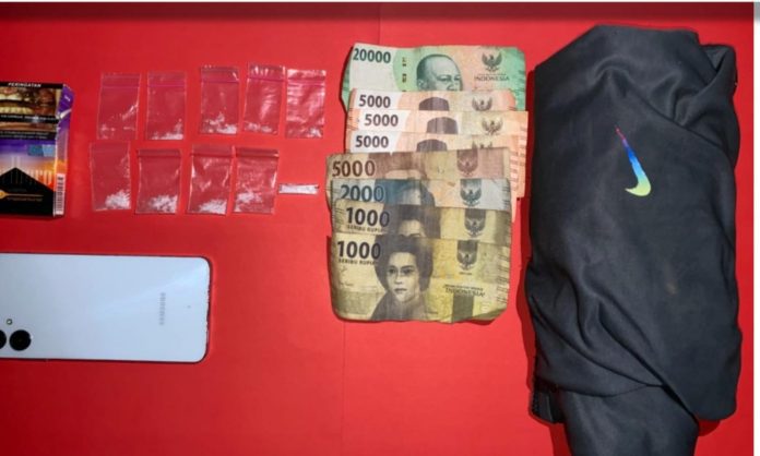 “Barang bukti yang diamankan berupa 10 paket diduga sabu yang dibungkus plastik klip bening dengan berat kotor 2,27 gram dan berat bersih 0,42 gram,” jelas Husaini.