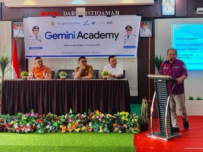 WARTABANJAR.COM, BARABAI – Pemerintah Kabupaten Hulu Sungai Tengah (HST) terus memperkuat kualitas pendidikan daerah melalui Pelatihan Gemini Academy Tahun 2026 yang resmi dibuka di Aula Hotel Darul Istiqamah, Barabai, Selasa (3/2/2026).