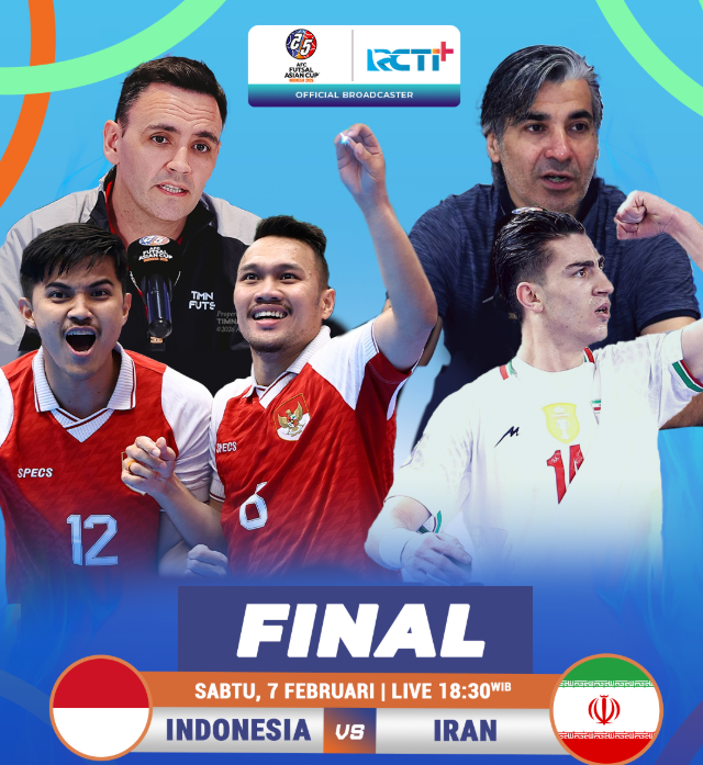Timnas Indonesia vs Iran AFC Futsal Asian Cup 2026 disiarkan live RCTI dan MNC TV hari ini, Sabtu, 7 Februari pukul 19.00 WIB.