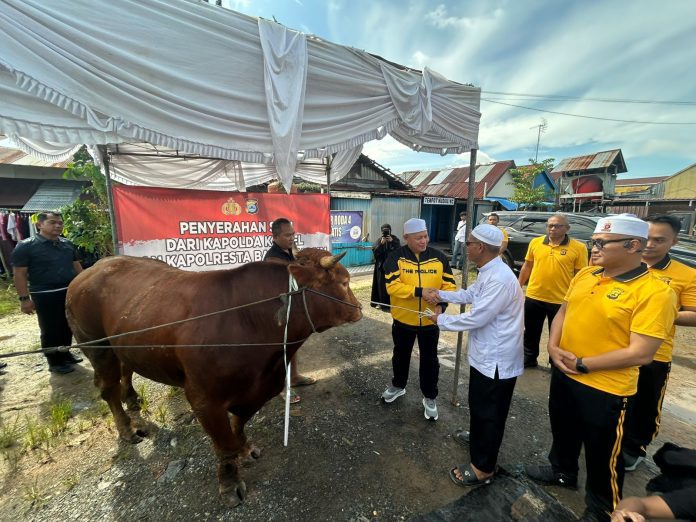Sebagai bentuk dukungan nyata, Kapolda Kalsel Irjen Pol Rosyanto Yudha Hermawan menyerahkan satu ekor sapi jenis Limosin Super kepada panitia pelaksana haul.