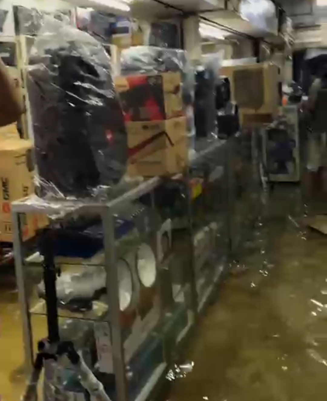 Hujan deras yang melanda Kota Banjarmasin membuat air meluap hingga masuk ke area Pasar Cempaka.