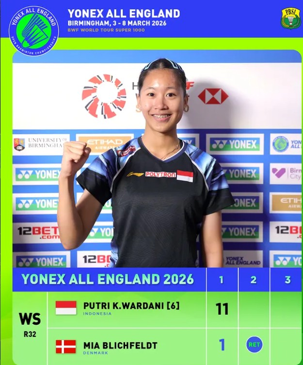 Sementara itu, perjuangan Putri KW sendiri berjalan mulus setelah lolos langsung ke 16 besar. Lawannya dari Denmark, Mia Blichfeldt, mundur di tengah pertandingan karena cedera saat unggul 11–1 di gim pertama, sehingga Putri otomatis melaju ke babak berikutnya.