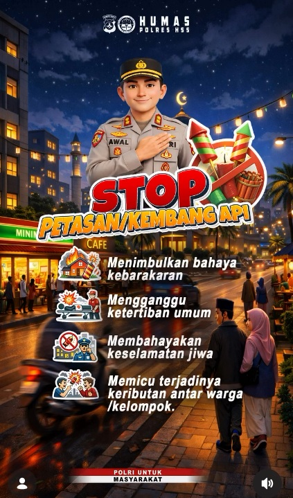 WARTABANJAR.COM, KANDANGAN- Polres Hulu Sungai Selatan mengimbau masyarakat agar tidak menyalakan kembang api dan petasan selama bulan puasa Ramadhan 2026 ini.