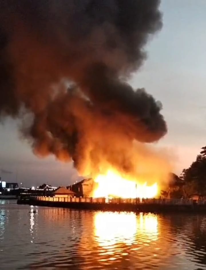 Kobaran api tampak besar dan mengeluarkan asap hitam pekat.