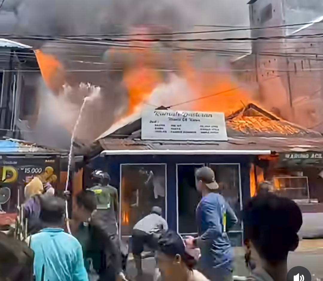 Api berkobar di tiga bangunan tersebut hingga membuat warga panik dan meminta bantuan pemadam kebakaran.