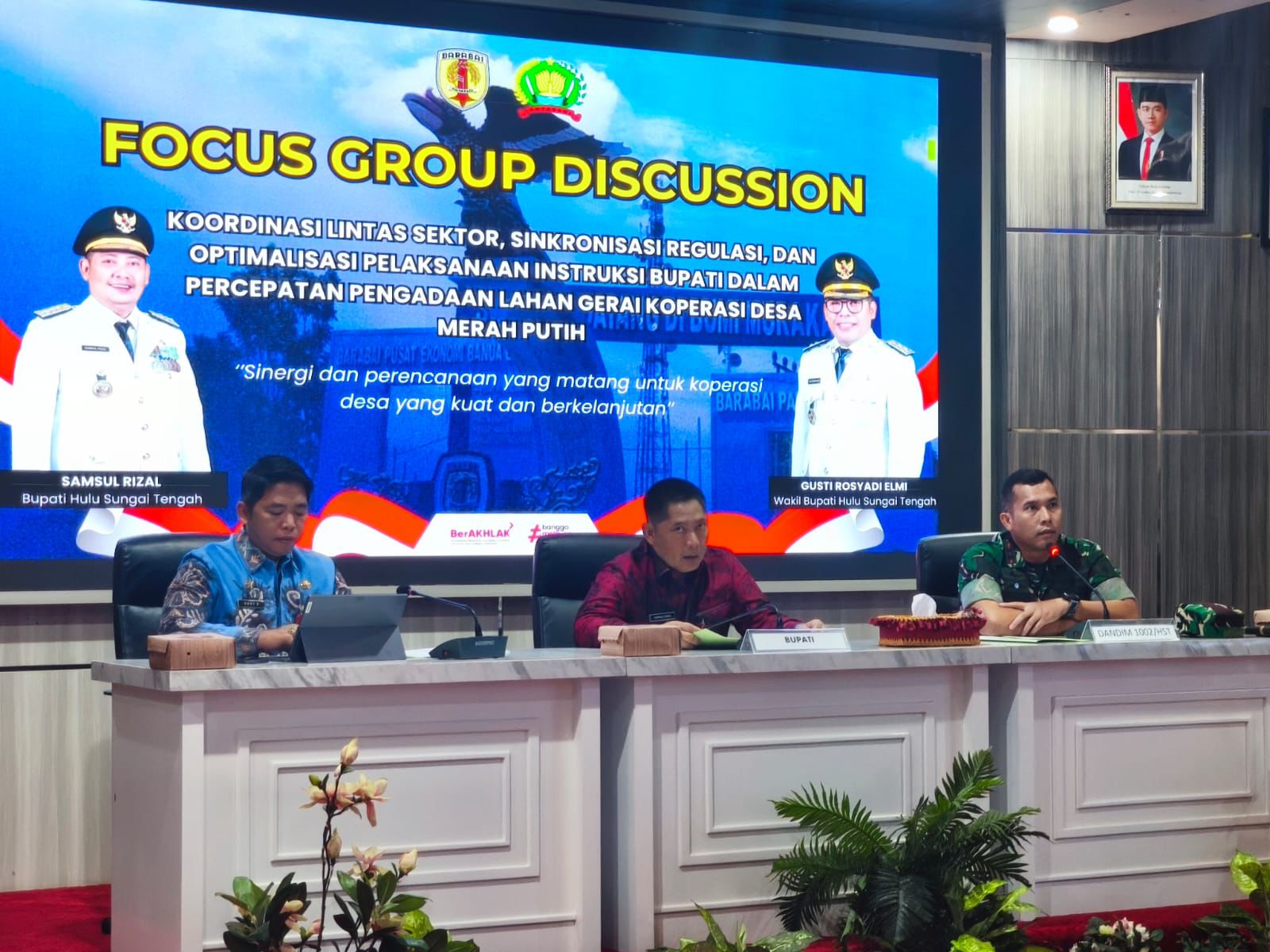 WARTABANJAR.COM, BARABAI– Pemerintah Kabupaten Hulu Sungai Tengah (HST) mempercepat proses pengadaan lahan untuk pembangunan Gerai Koperasi Desa Merah Putih melalui Focus Group Discussion (FGD), Kamis (16/4/2026).