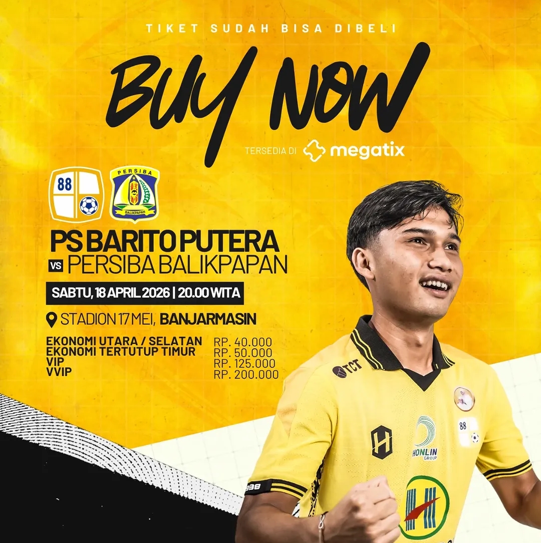 Berikut pilihan tiket laga Barito Putera vs Persiba Balikpapan di Stadion 17 Mei Banjarmasin :
