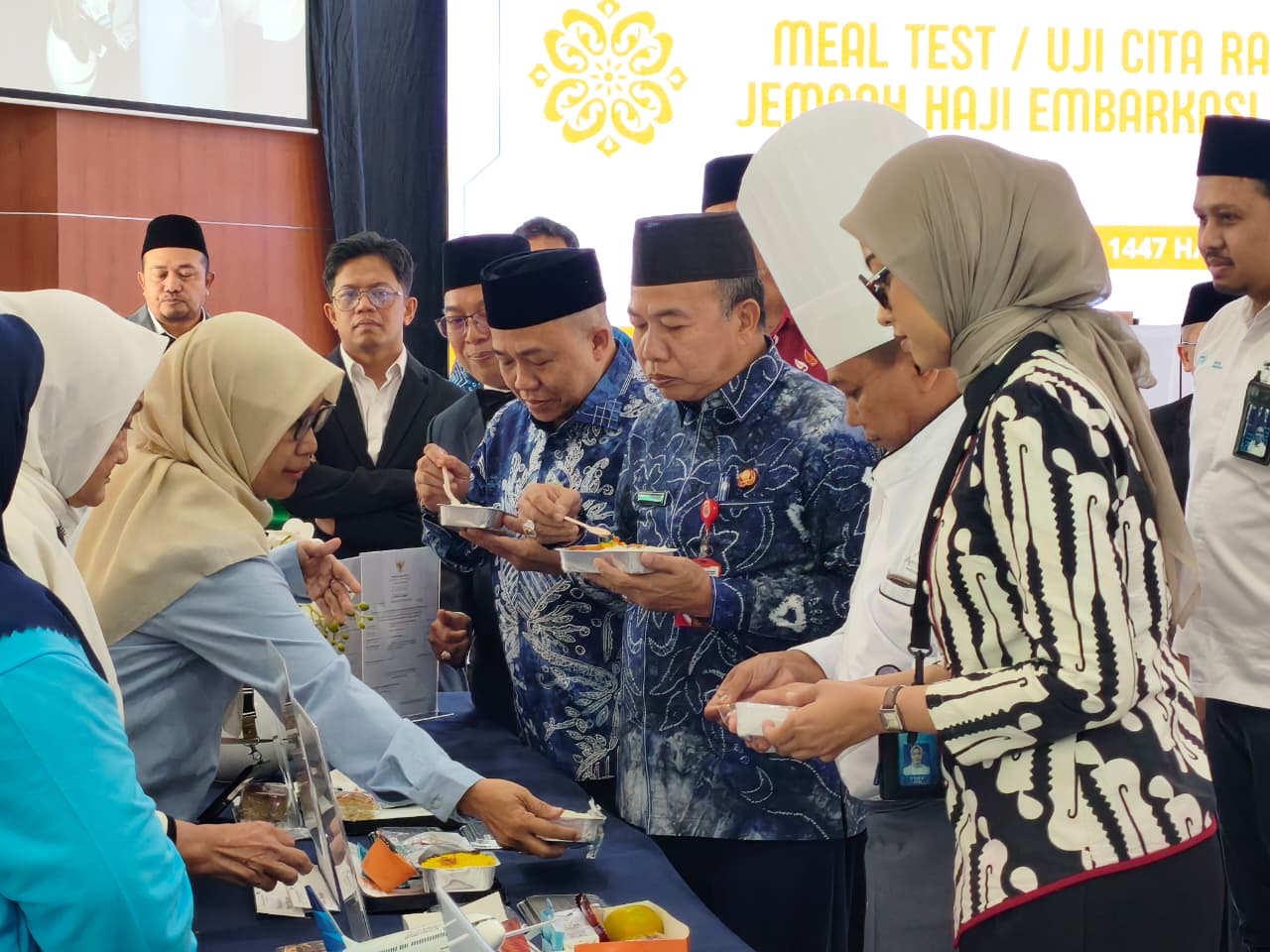 Apresiasi tersebut disampaikan usai melakukan uji kualitas makanan (meal test) dalam rangka pelantikan Petugas Penyelenggara Ibadah Haji (PPIH) 2026 di Aula Embarkasi Haji Banjarmasin, Banjarbaru, Kamis (16/4/2026).