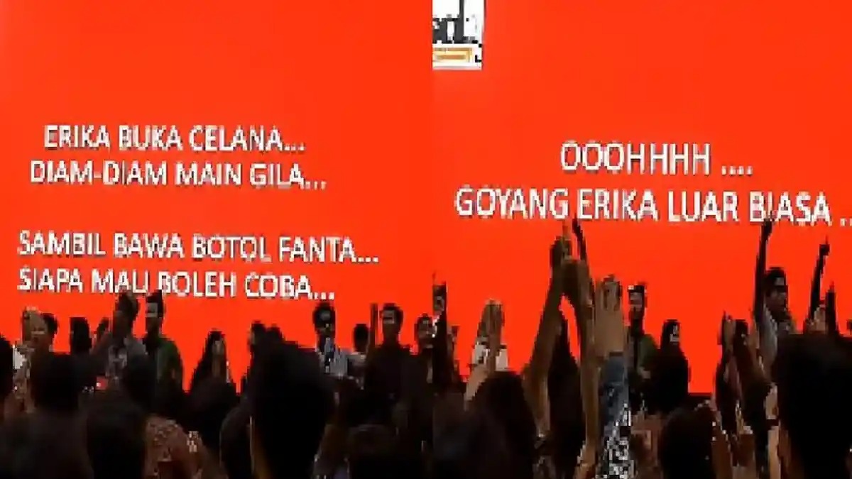 Berdasar video yang viral di medsos, puluhan mahasiswa menyanyikan lagu Erika dalam suatu acara.