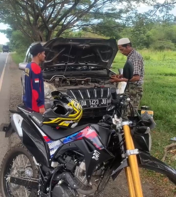 Faktanya, petugas justru menemukan satu unit mobil yang mengalami kendala teknis serius di bahu jalan, Jumat (17/4/2026).