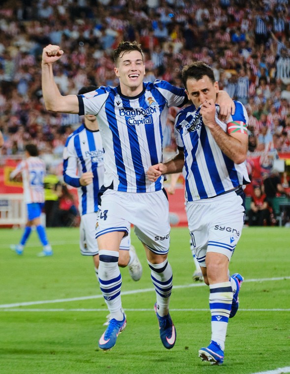 Menjelang akhir babak pertama, Sociedad kembali unggul. Wasit menunjuk titik putih setelah Juan Musso melanggar Guedes di kotak penalti. Mikel Oyarzabal yang maju sebagai eksekutor berhasil menuntaskan tugasnya dengan baik, membawa Sociedad unggul 2-1 di menit 45+1.
