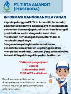WARTABANJAR.COM, KOTABARU- Sehubungan dengan adanya perbaikan Pipa Distribusi 6 inch di Jalan