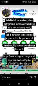 WARTABANJAR.COM – Akun instagram Teman Bus Kota Banjarmasin diretas oknum. Akun ini