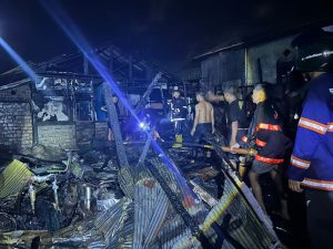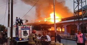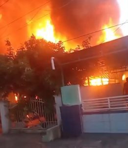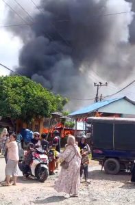 WARTABANJAR.COM, PELAIHARI- Api berkobar di Pasar Lawas, Pelaihari, Kabupaten Tanah Laut, Kalsel,