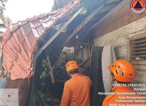 WARTABANJAR.COM, BANJARMASIN – Sebuah rumah ambruk di Jalan Rawasari lX No.17 RT