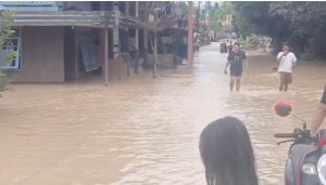 WARTABANJAR.COM, TANJUNG – Banjir akibat luapan sungai kembali merendam wilayah Desa Kaong,