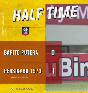WARTABANJAR.COM – Babak pertama antara PS Barito Putera melawan Tira Persikabo 1973