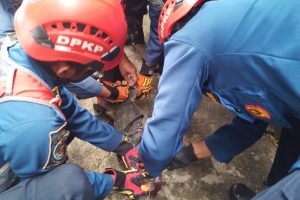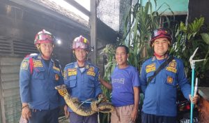 WARTABANJAR.COM, BATULICIN- Petugas Pemadam Kebakaran (Damkar) Batulicin berhasil mengevakuasi seekor biawak yang