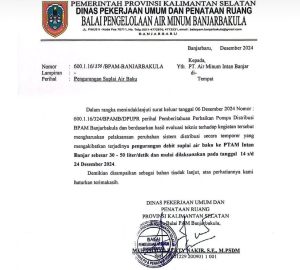WARTABANJAR.COM, MARTAPURA- Sehubungan dengan adanya surat dari Balai Pengolahan Air Minum (BPAM)