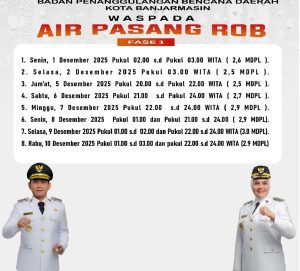WARTABANJAR.COM, BANJARMASIN- Dua ancaman bencana hidrometeorologi disebut menghantui Kota Banjarmasin sejak November