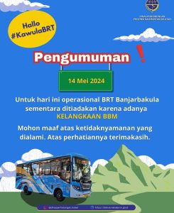 WARTABANJAR.COM – Bus Rapid Transit (BRT) Banjarbakula berhenti beroperasi pada hari ini,