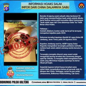 Cek Fakta Pengiriman Buah Salak Berisi Sabu dari ChinaBerita, Jakarta|Kamis, 6 Juni 2024 - 08:09 WIBKamis, 6 Juni 2024 - 08:57 WIBoleh RestuWARTABANJAR.COM – Viral di media sosial sebuah video berdurasi 59 detik yang