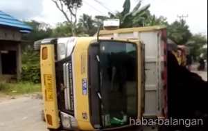 WARTABANJAR.COM, PARINGIN – Truk mengakut batu bara terguling di jalan alternatif Mantimin,
