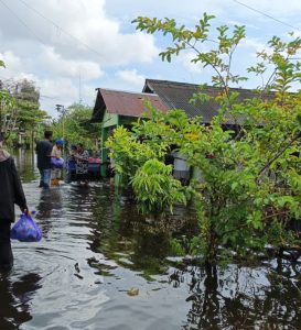 WARTABANJAR.COM, BANJAR- Genangan banjir masih merendam sejumlah kawasan pemukiman warga di Desa
