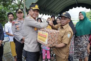 WARTABANJAR.COM, MARTAPURA– Marliana tampak senang mendapat bantuan sembako dari Pemerintah Provinsi Kalimantan