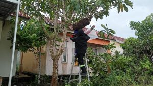 WARTABANJAR.COM, MARTAPURA – Tiang listrik mengeluarkan percikan api depan warung rumah makan