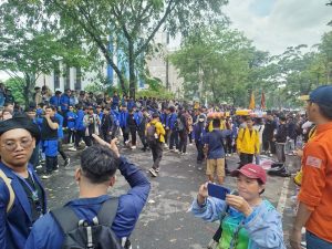 WARTABANJAR.COM, BANJARMASIN – Unjuk rasa yang digelar mahasiswa bersama elemen masyarakat di
