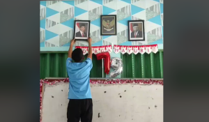 WARTABANJAR.COM, JAKARTA – Warga antusias memasang foto Presiden Prabowo Subianto dan Wakil