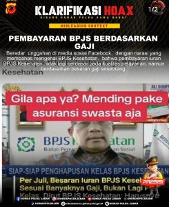Cek Fakta Iuran BPJS Kesehatan Menyesuaikan Besaran GajiBerita, Nasional|Sabtu, 1 Juni 2024 - 17:35 WIBSabtu, 1 Juni 2024 - 19:01 WIBoleh RestuWARTABANJAR.COM – Viral unggahan Facebook yang membahas mengenai iuran BPJS Kesehatan berdasarkan