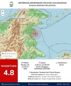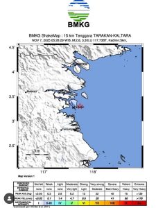 Tarakan Gempa Lagi, BMKG Catat Sudah 7 Kali Gempa Susulan Sejak 5 November 2025Berita, Borneo, Headline|Jumat, 7 November 2025 - 07:32 WIBJumat, 7 November 2025 - 08:46 WIBoleh Yayu FathilalWARTABANJAR.COM, TARAKAN- Kota Tarakan, Kalimantan Utara kembali digoyang gempa bumi. Kali ini