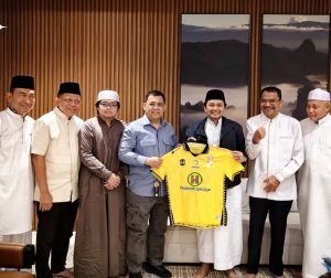 WARTABANJAR.COM, BANJARMASIN – CEO Barito Putera, Hasnuryadi Sulaiman menyerahkan jersey nomor 1