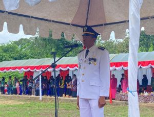 WARTABANJAR.COM – Momen pengibaran bendera Merah Putih di sebuah lapangan kecamatan mendadak