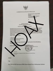 Hoaks! Dinsos Kalsel Tegaskan Tak Pernah Buat Edaran Penggalangan DanaKalsel|Sabtu, 14 Januari 2023 - 15:20 WIBSabtu, 14 Januari 2023 - 16:14 WIBoleh RestuWARTABANJAR.COM – Beberapa waktu ini, dunia maya dihebohkan dengan adanya surat edaran