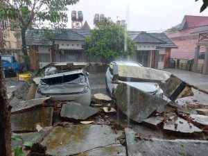 WARTABANJAR.COM, BANJARBARU – Pagar beton roboh di depan Balai Pelatihan Kesehatan (BAPELKES)