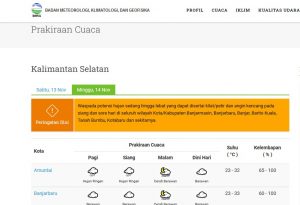 WARTABANJAR.COM, BANJARMASIN-BMKG merilis peringatan dini untuk prakiraan cuaca Kalsel besok, Senin (22/11/2021).