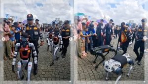 WARTABANJAR.COM, JAKARTA – Publik dibuat tercengang dengan kemunculan robot polisi berbentuk anjing