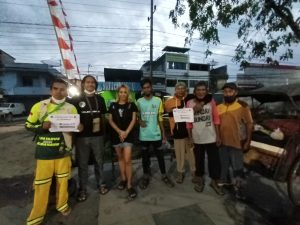 WARTABANJAR.COM, MARABAHAN – Sebuah truk bermuatan penuh pakan ternak ayam terbalik di
