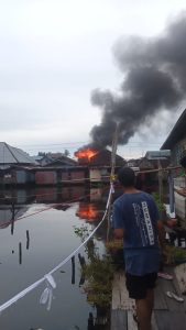 WARTABANJAR.COM, BANJARMASIN – Api berkorbar di Jalan Kelayan B depan Gang Baja,