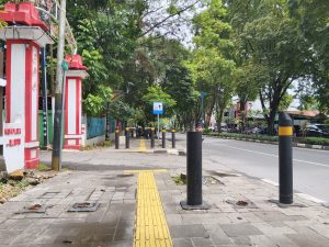 WARTABANJAR.COM, BANJARBARU – Misteri hilangnya puluhan bollard atau tiang pembatas trotoar di