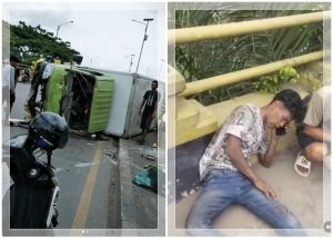 WARTABANJAR.COM, BANJARMASIN – Sebuah video kecelakaan lalu lintas yang memperlihatkan sebuah truk