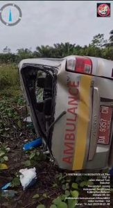 BREAKING NEWS : Ambulans Ditengarai Milik RS Ansyari Saleh Kecelakaan, Bodi Kiri Tak Mulus LagiHeadline, Kalsel, Pesisir|Jumat, 16 Juni 2023 - 07:57 WIBJumat, 16 Juni 2023 - 10:05 WIBoleh Hasby SuhailyWARTABANJAR.COM, JORONG – Sebuah mobil unit ambulans terbalik di daerah Gunung Tiung