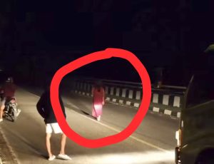 WARTABANJAR.COM, BATOLA – Seorang wanita berbaju merah berjalan tengah malam di Jembatan