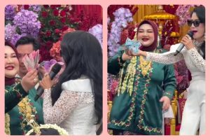 WARTABANJAR.COM, AMUNTAI- Pedangdut Rita Sugiarto hadir menghibur tamu undangan pesta pernikahan di