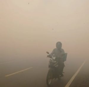 WARTABANJAR.COM, BANJARMASIN – Kondisi udara di Kota Banjarmasin makin pekat akibat kabut